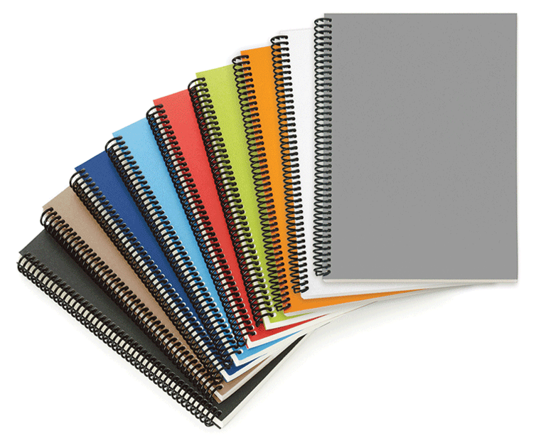 13-pt soft-cover. Black spiral-bound binding. 72 ruled ivory sheets made from 90% recycled material. Both paper sheets and notebook covers are colored with organic inks.